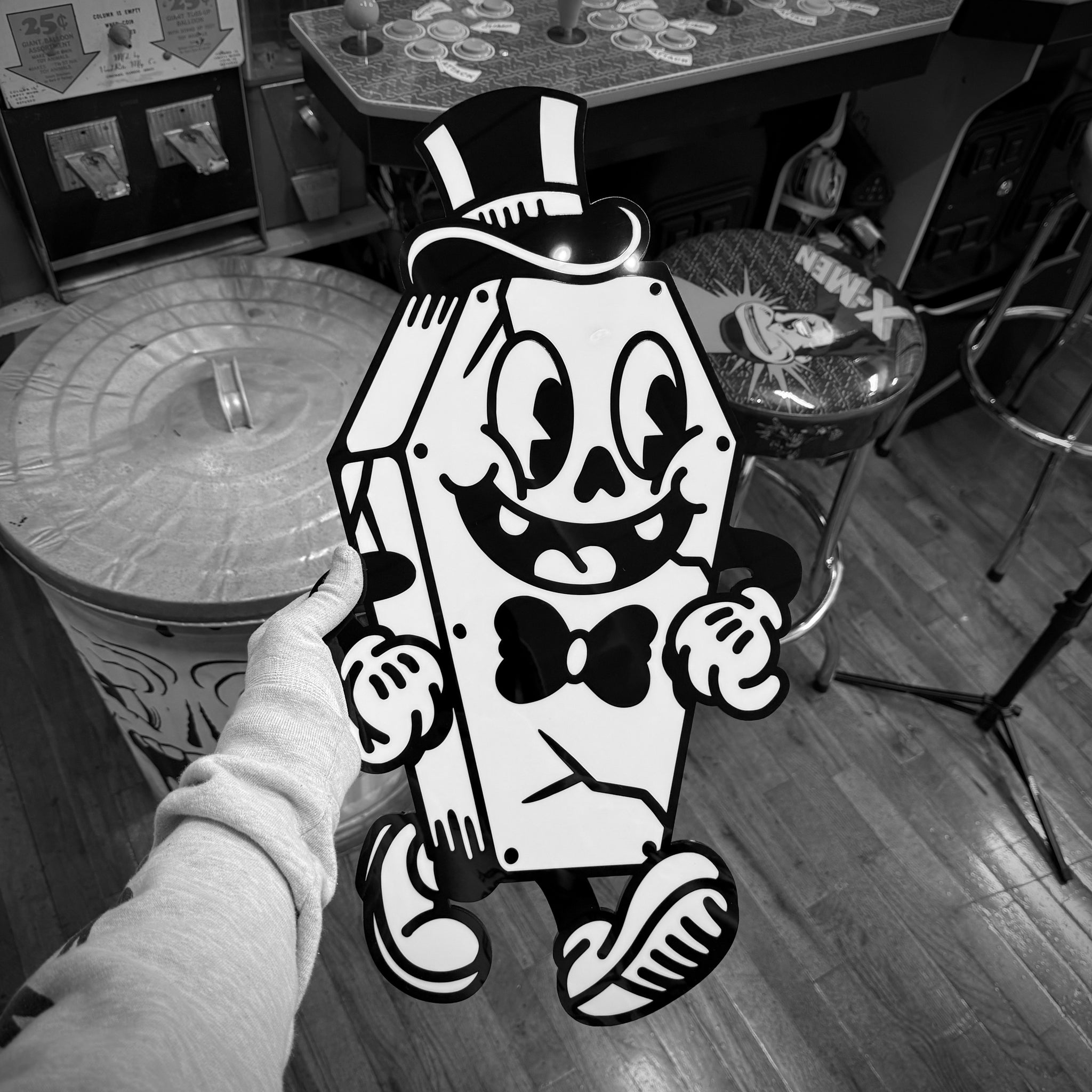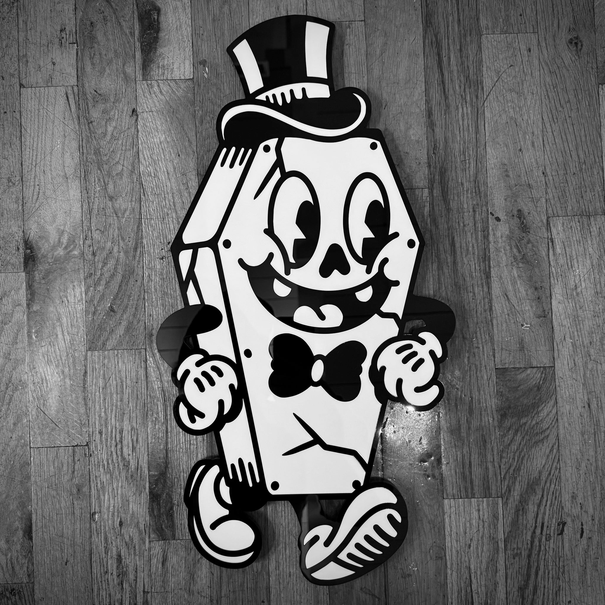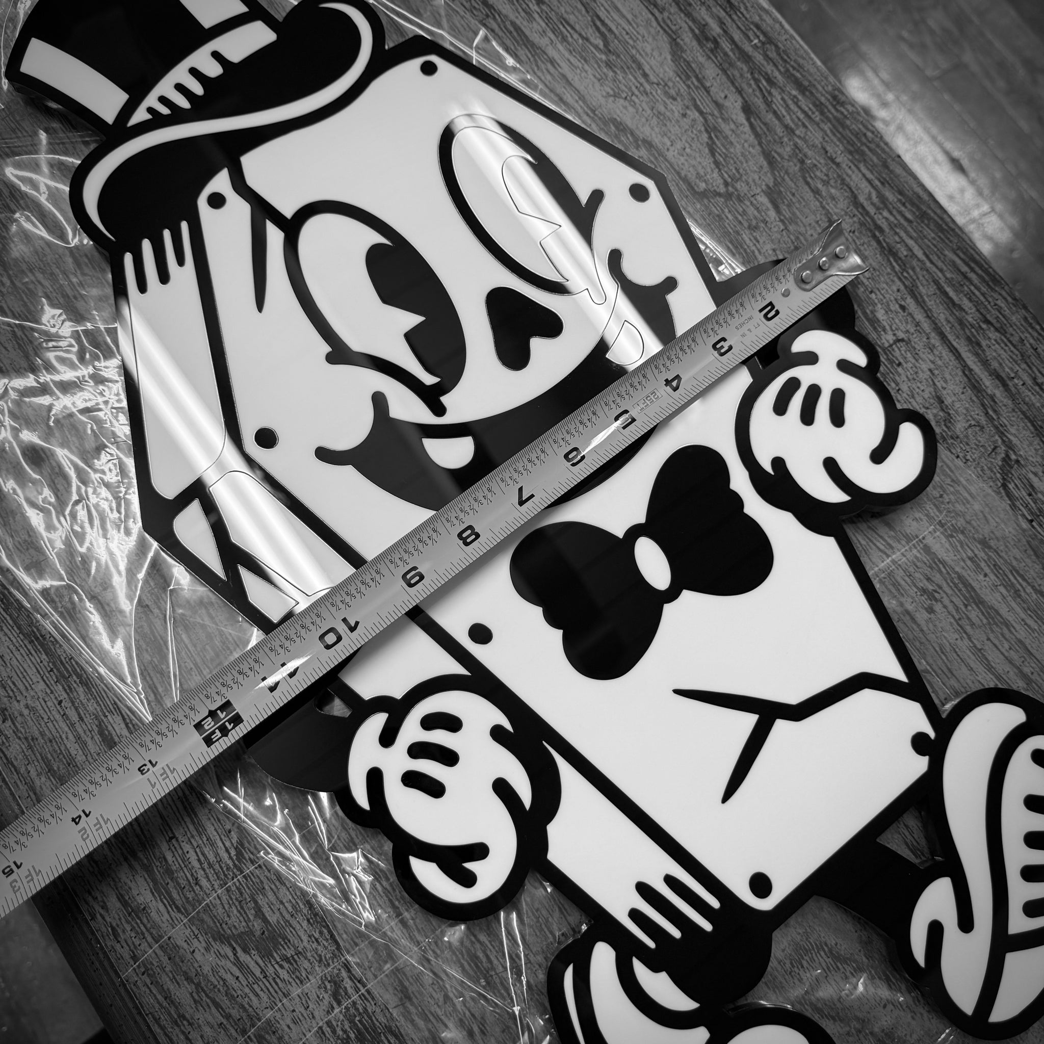 - Laser-cut black & white acrylic