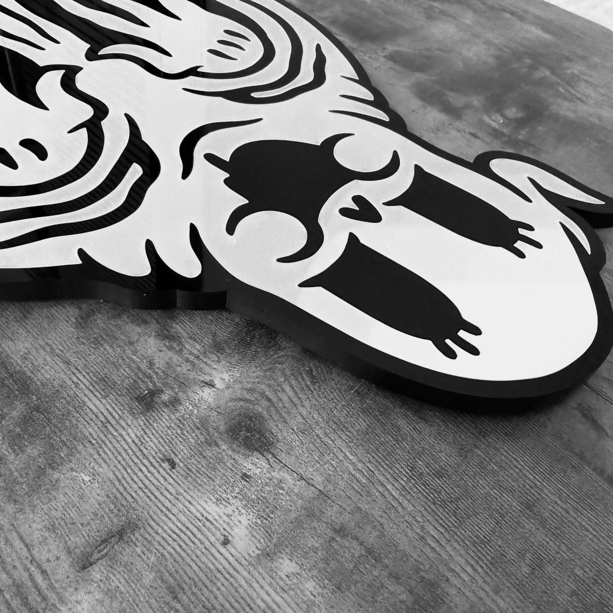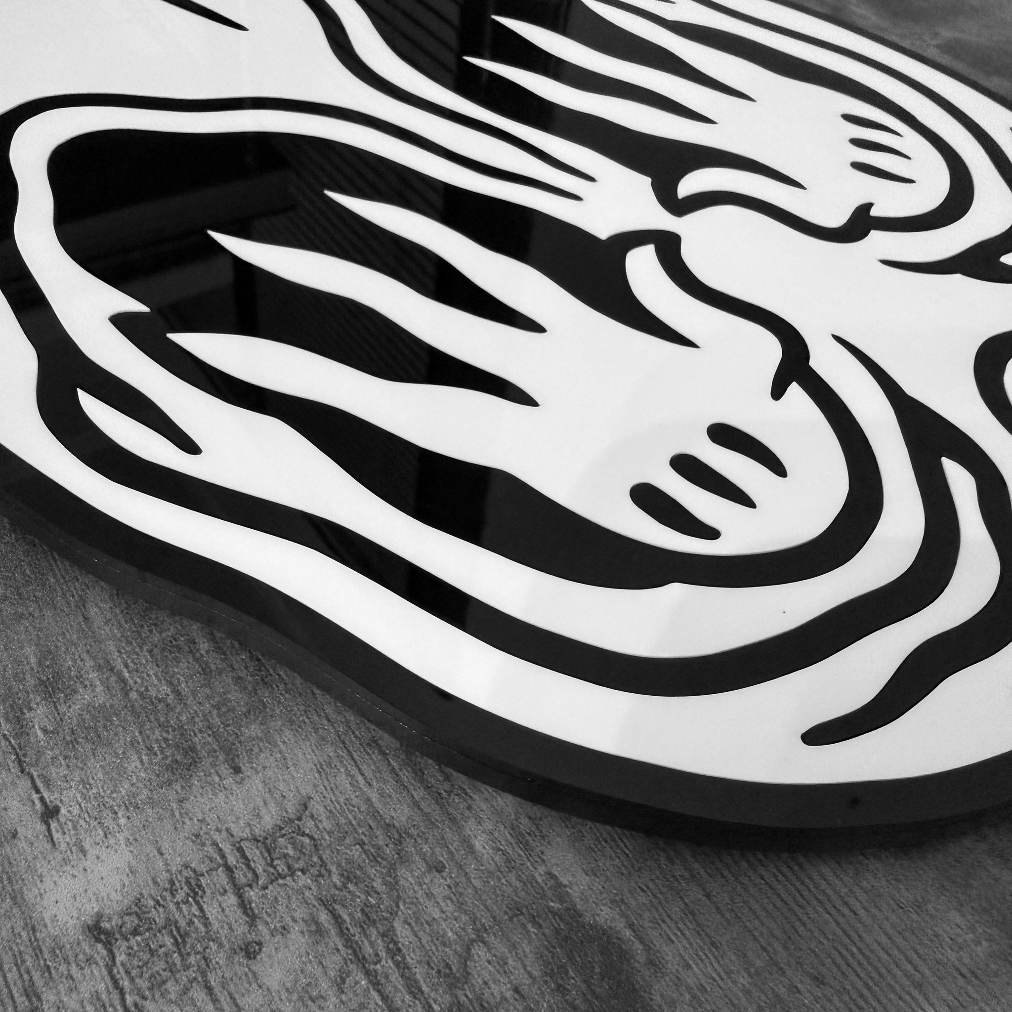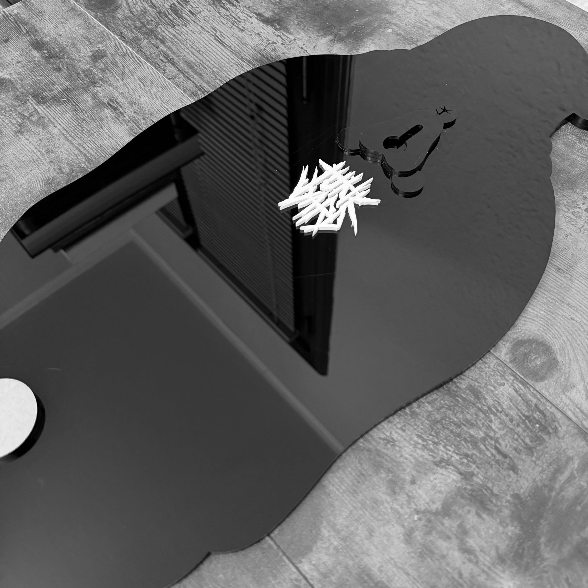 • Laser-cut black & white acrylic
