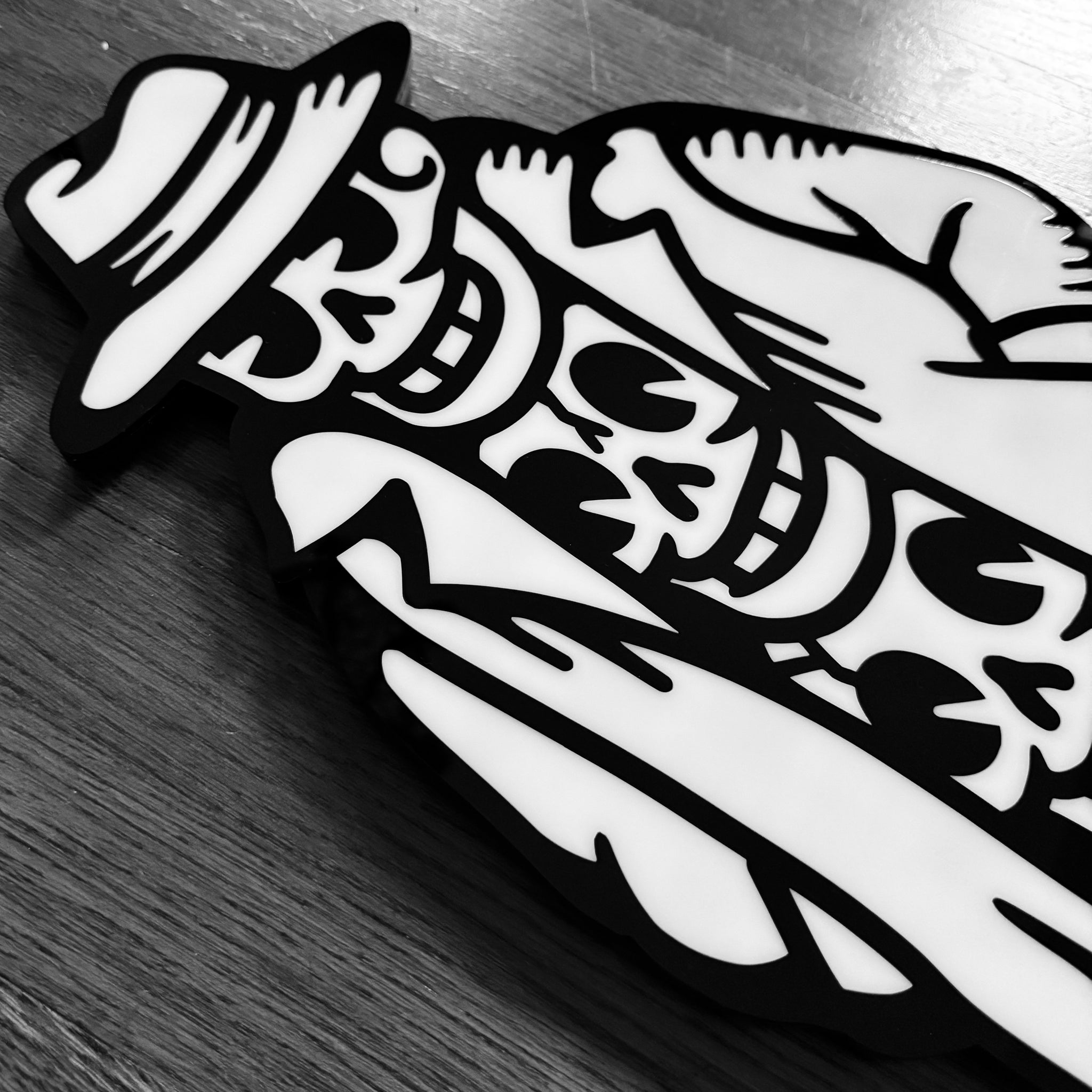- Laser-cut black & white acrylic