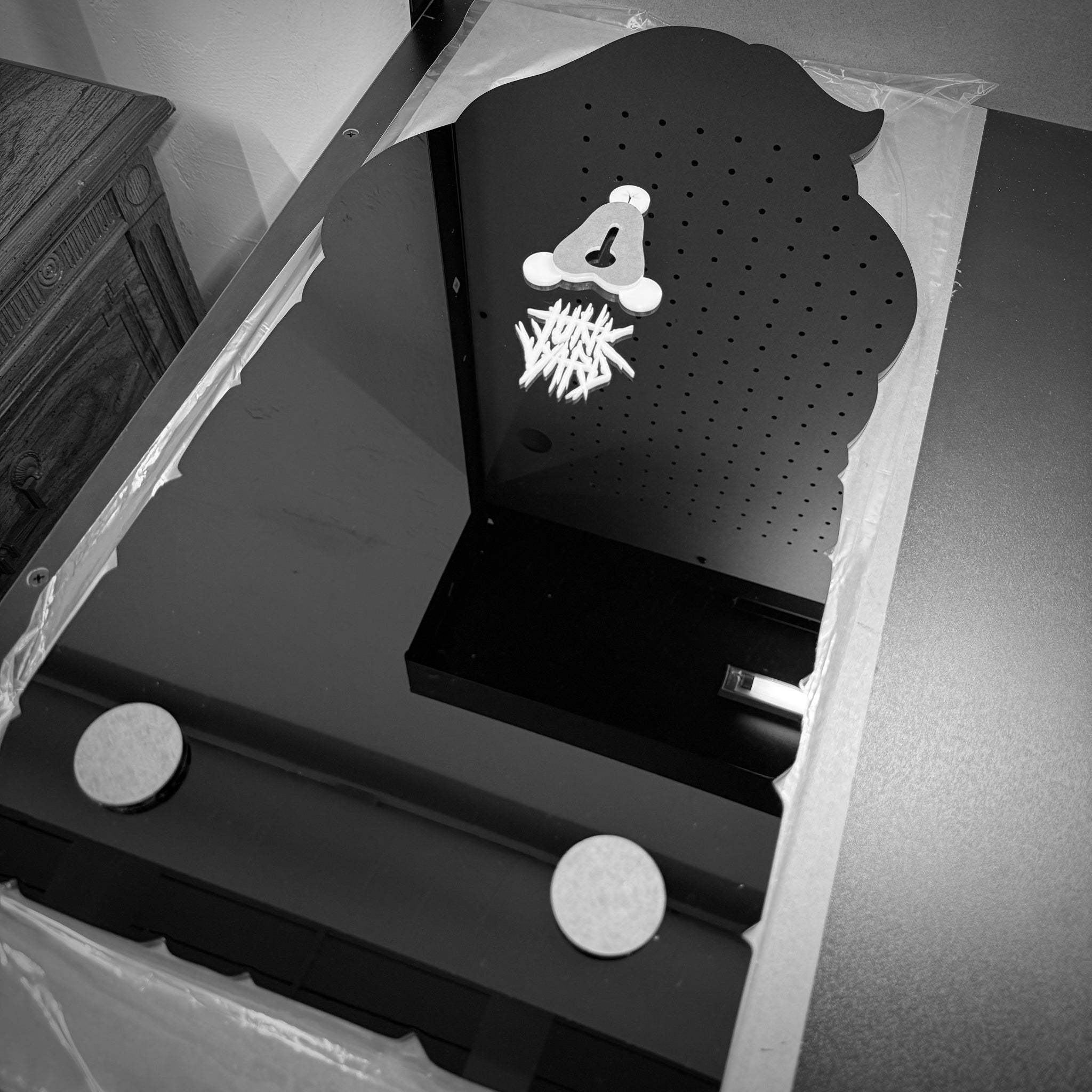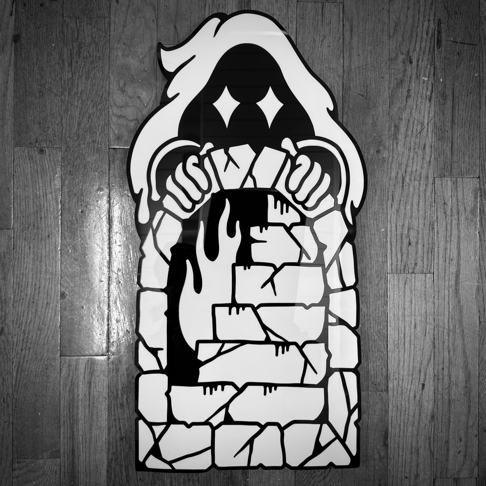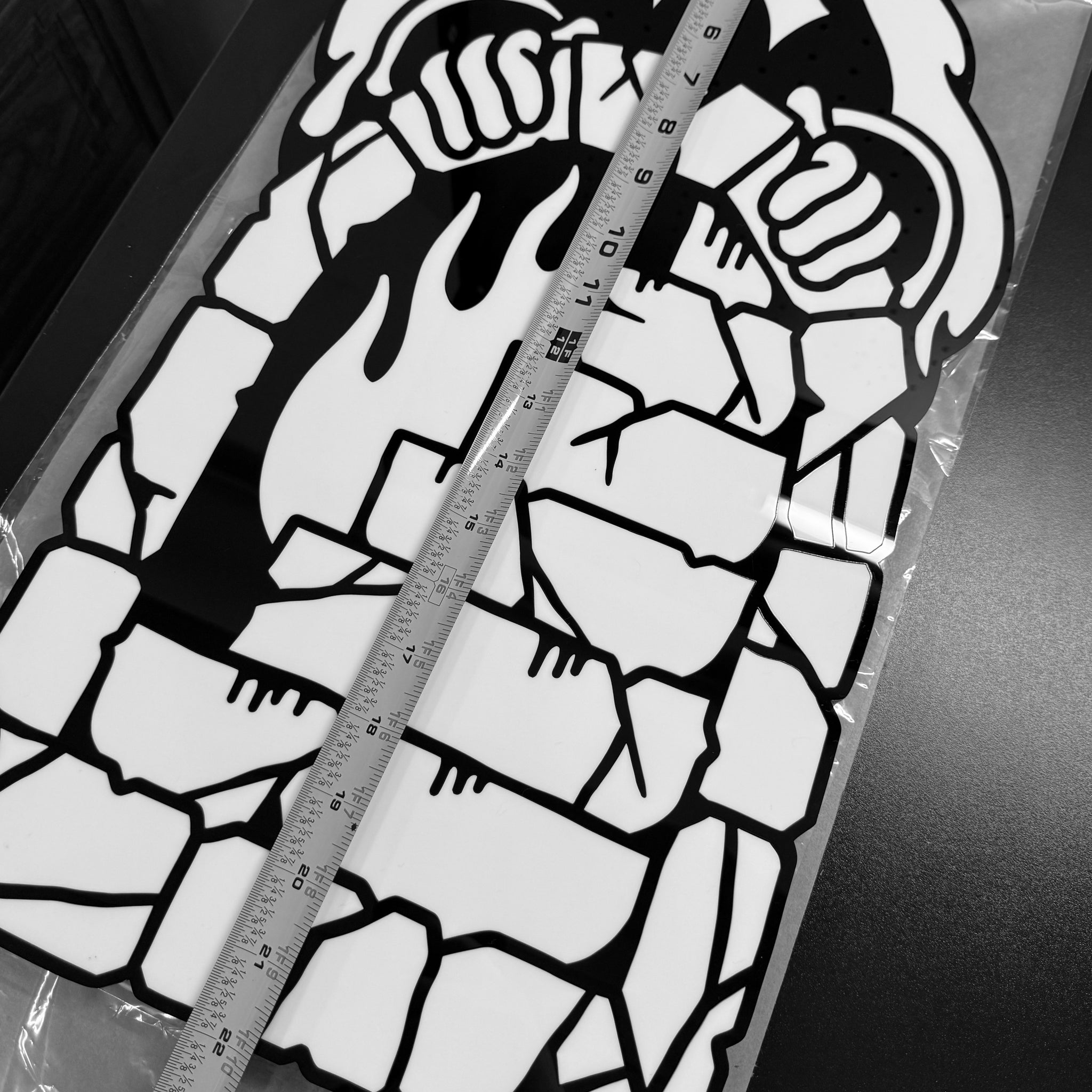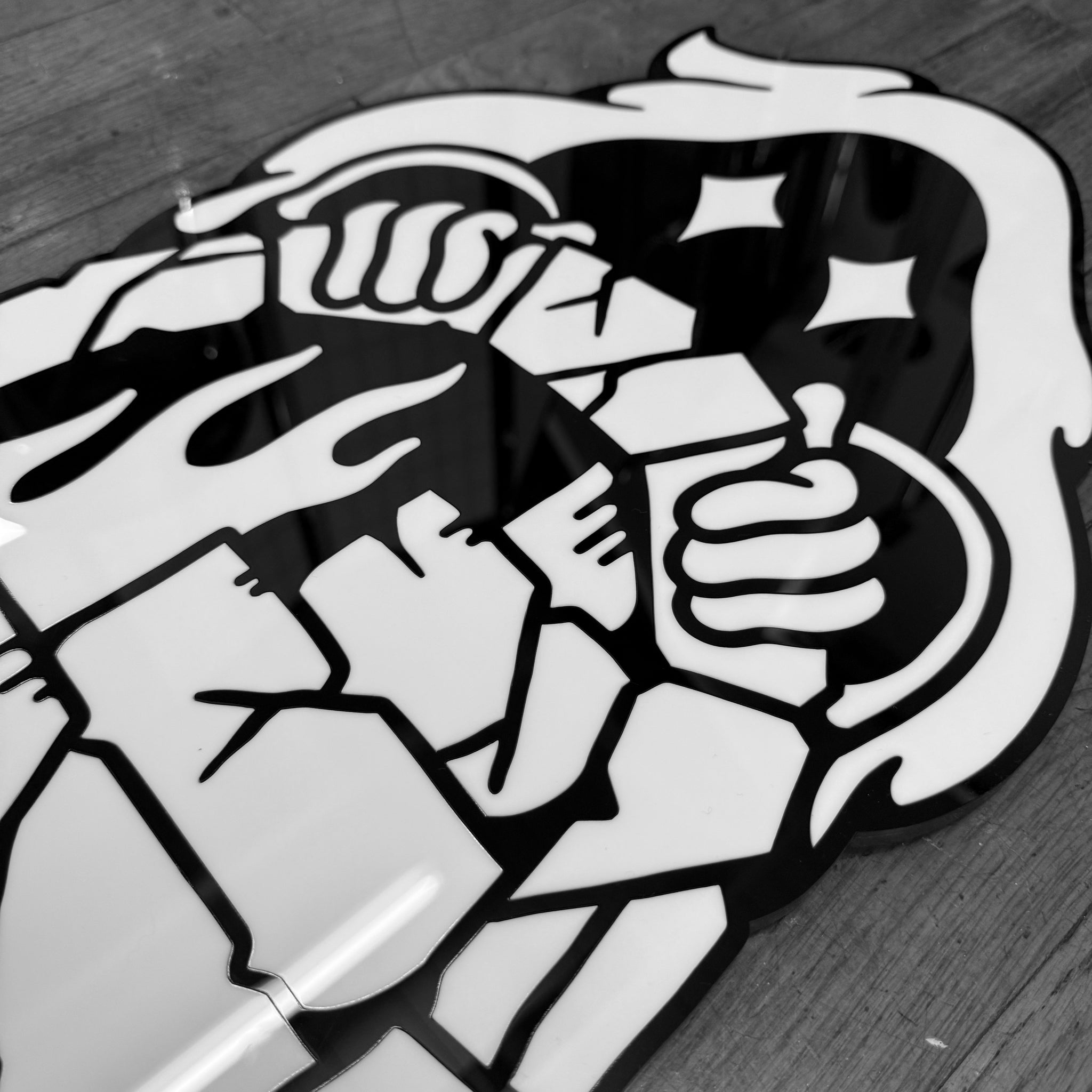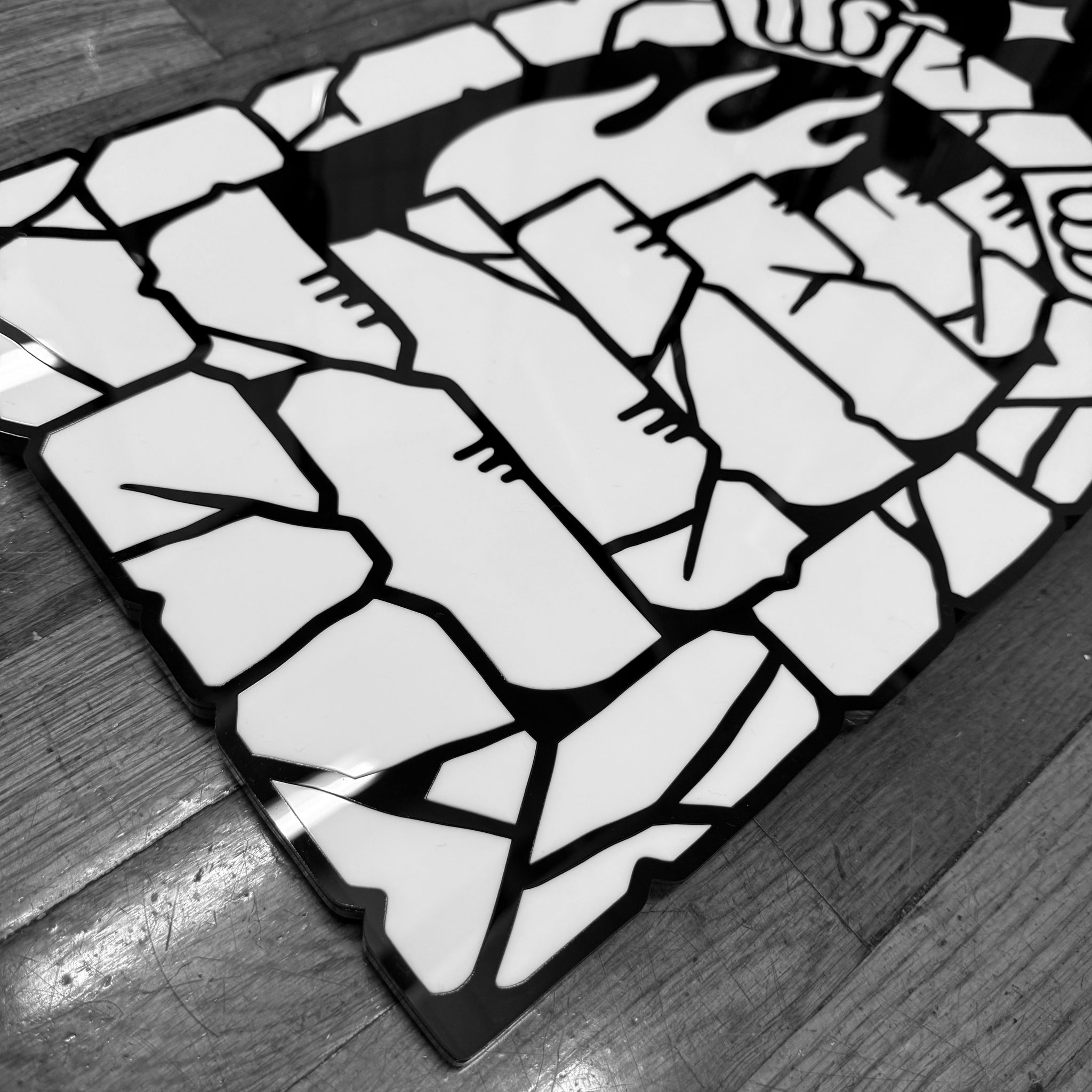 - Laser-cut black & white acrylic